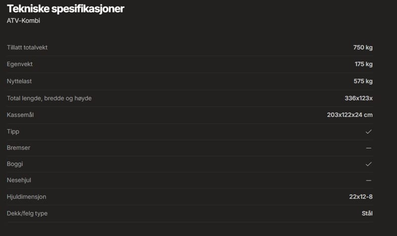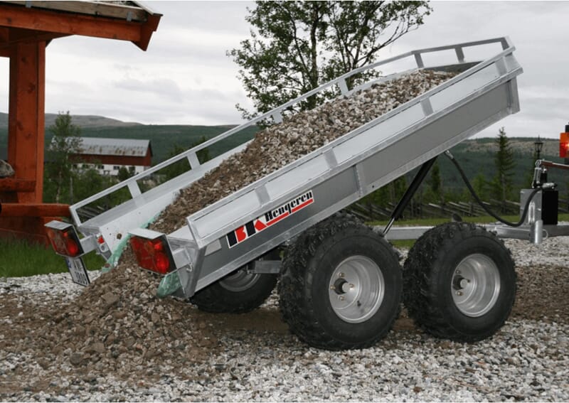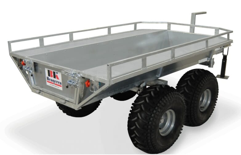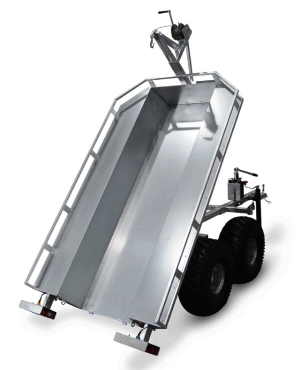 Helsveist og varmgalvanisert ATV henger. Her får du tre hengere i en. Tipphenger, Liten «varehenger» og tømmerhenger. Ypperlig for jakt, og frakt av eks elg. Elgtårn er ekstrautstyr. Kan påmonteres vinsj eller bruke vinsj på eks ATV. Kan enkelt gjøres om til frakt av tømmer, og tømmerstaker følger med sammen med frontgrind. Kran for løft av tømmer, og støttebein til frontgrind er ekstrautstyr. Hydraulikk kan påmonteres.