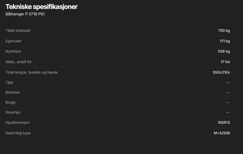 Beregnet for båttyper som pioner. Denne har 24 støttehjul for å fordele vekt over hele bunnen på båten. Støtter kan flyttes sideveis og justeres i høyderetning dersom det er båt som har behov for dette. Høytmonterte baklykter som ikke skal tas av ved ut/opptak av båt.