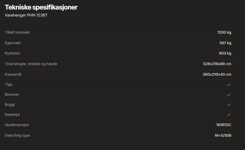 • Varehenger PHN 1238T