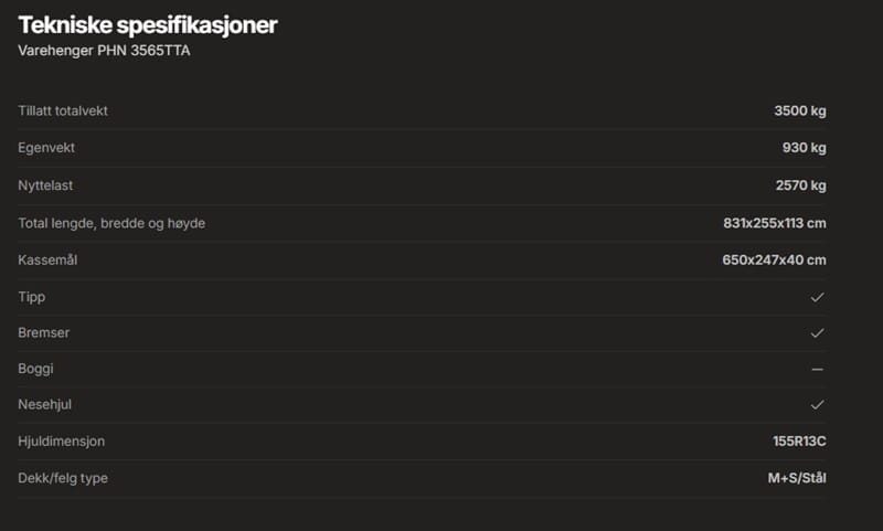 • Varehenger PHN 3565TTA
