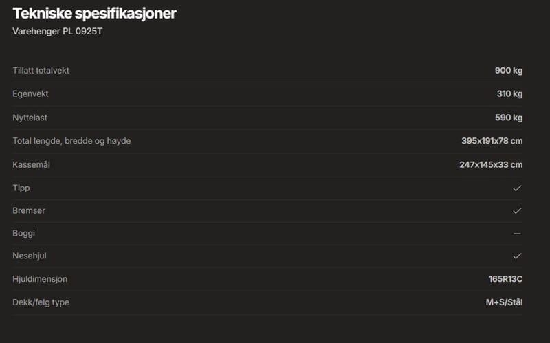 • Varehenger PL 0925T