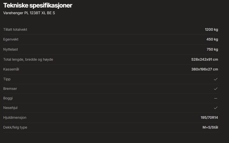 • Varehenger PL 1238T XL BE S