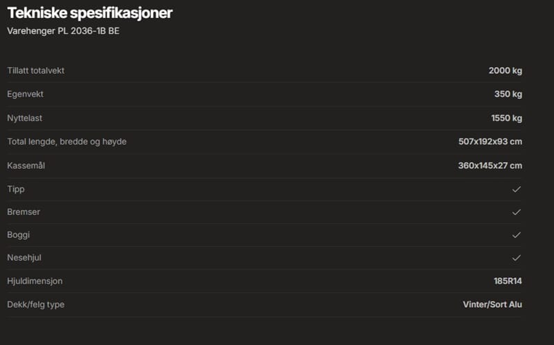 • Varehenger PL 2036-1B BE