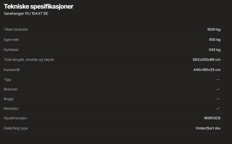 • Varehenger PLI 1044T BE