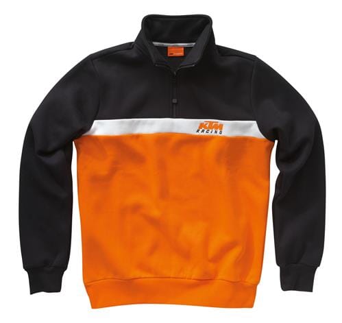 Practical Troyer sweatshirt with zip collar in KTM Racing style. Embroidered KTM Racing on the chest, large embroidered logo on the back.