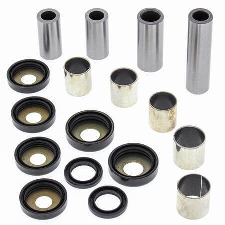 All Balls Linkage kit ,Off-Road Motorcycle and ATV ,The most comprehensive line of Off-Road and ATV Swingarm Linkage kits available anywhere. ,One kit does it all! All of the bearings, seals, shafts, bushings, thrust bearings (if required) in one all inclusive kit in order to do the job correctly and completely. ,All bearing shafts manufactured with 52100 bearing steel that is hardened and centerless ground for a precision fit and extended wear. ,All steel spacers are case-hardened and plated for resistance to wear and corrosion. ,Linkage kits contain the lower shock bearing components. No more hunting around for missing pieces costing you time and extra money.