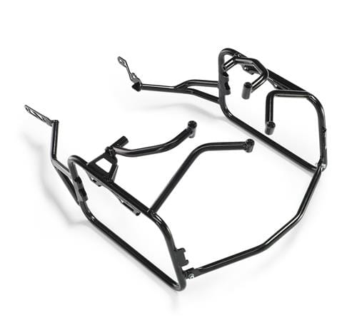 Torsionally rigid, tubular steel rack specially designed to take all case systems available from KTM. Simple fitting, without modifying the pillion foot pegs. Optimum load distribution via existing mounting points on the chassis.
